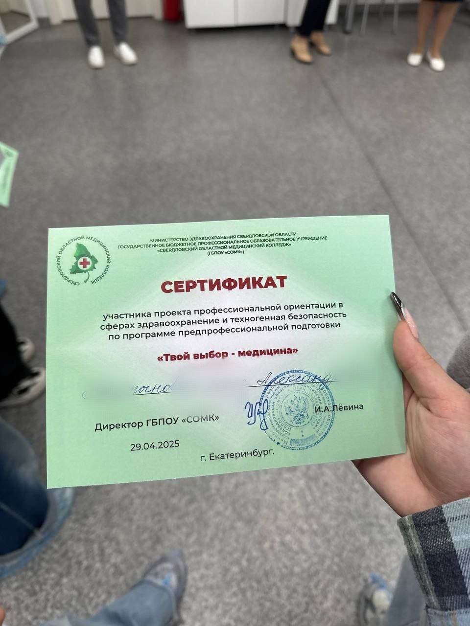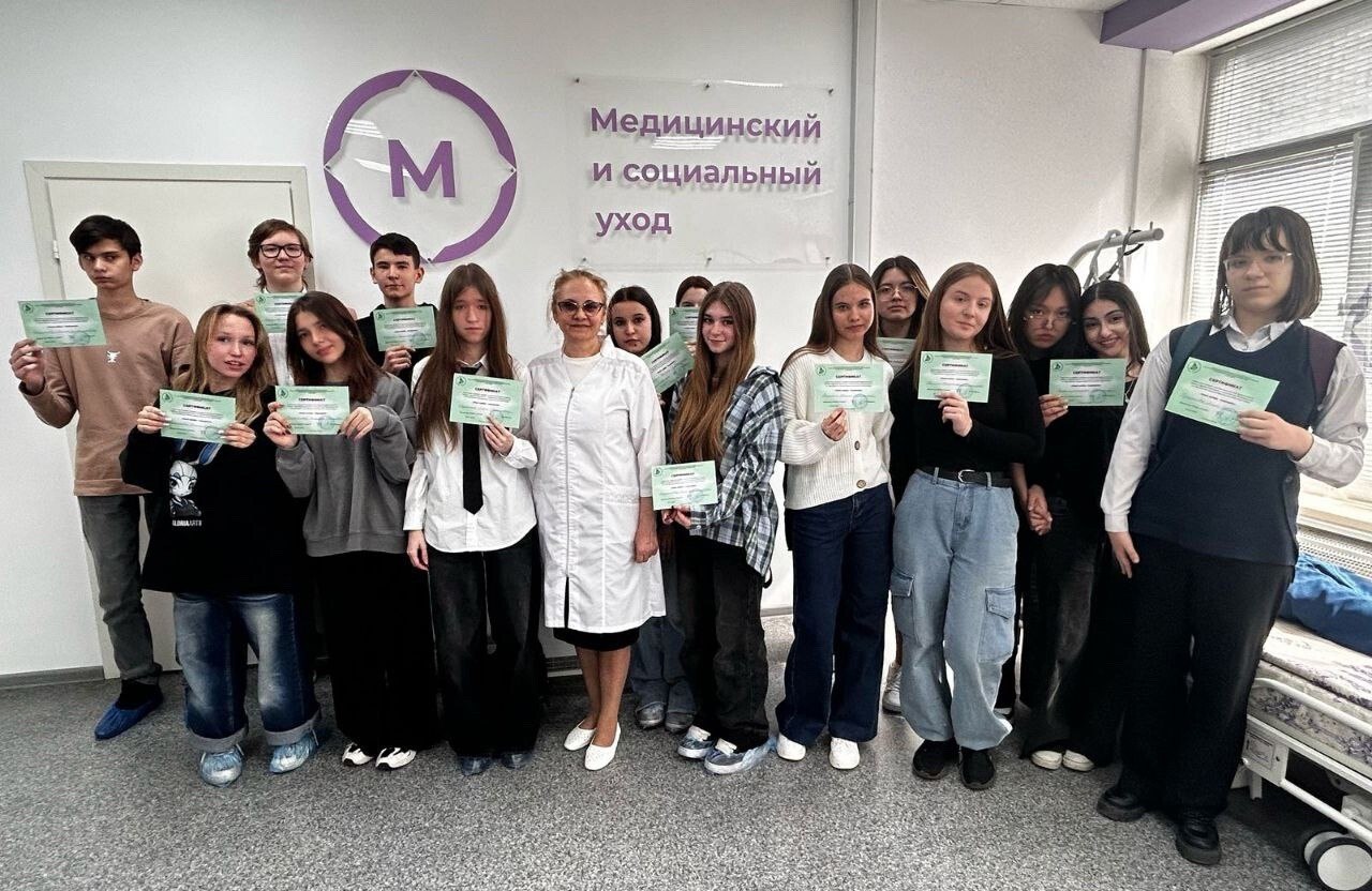 Ребята ознакомились со специальностью "Сестринское дело" и получили сертификаты, подтверждающие успешное освоение проекта "Медицина — твой выбор".