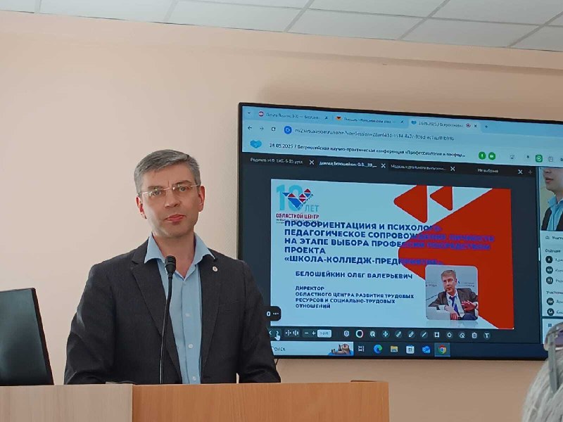 Директор Центра развития трудовых ресурсов Белошейкин Олег выступил с докладом "Профориентация и психолого-педагогическое сопровождение личности на этапе профессии", рассказал о состоянии рынка труда Свердловской области, проблеме моногорода и практическом опыте реализации проекта "Школа -колледж- предприятие" в Екатеринбурге и городах области.